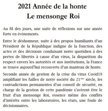 Je n’imaginai même pas à cette époque combien l’année 2021 allait être riche en événement liés à ce virus. Comme je le révèle dans toutes mes réflexions sur les contradictions, les informations diverses, les stigmatisations, les invraisemblances, les décisions prouvent combien la bêtise est présente.